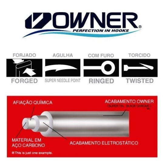 Os anzóis Owner possuem uma proteção contra corrosão e salinidade, porém, por se tratar de um produto ecológico e biodegradável, mantenha sempre limpo, armazenar livre de umidade e sal, ele irá se deteriorar se estiver em constante contato com a umidade e o sal. Por serem extremamente afiados manuseie com cuidado, mantenha longe de crianças, animais domésticos, não jogue na natureza ou em locais que possam causar acidentes. Características Os anzóis Owner são extremamente afiados. Os anzóis já vem afiados antes da forja, portanto, ao tentar fazer a sua afiação por conta própria, compromete a estrutura do aço podendo torná-la mais frágeis.
