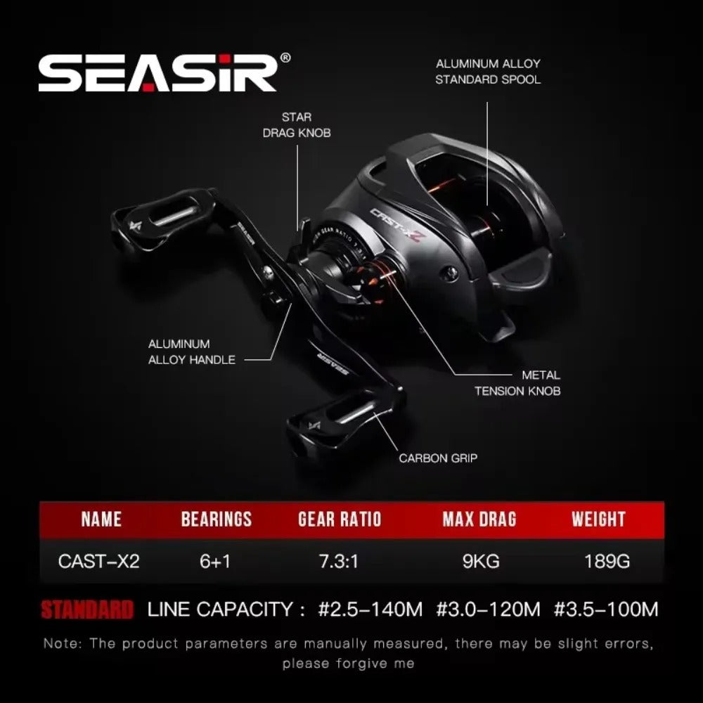 Carretilha SEASIR Cast-X 7.3:1 Recolhimento Drag 8.5KG Carretel Duplo Em Alumínio