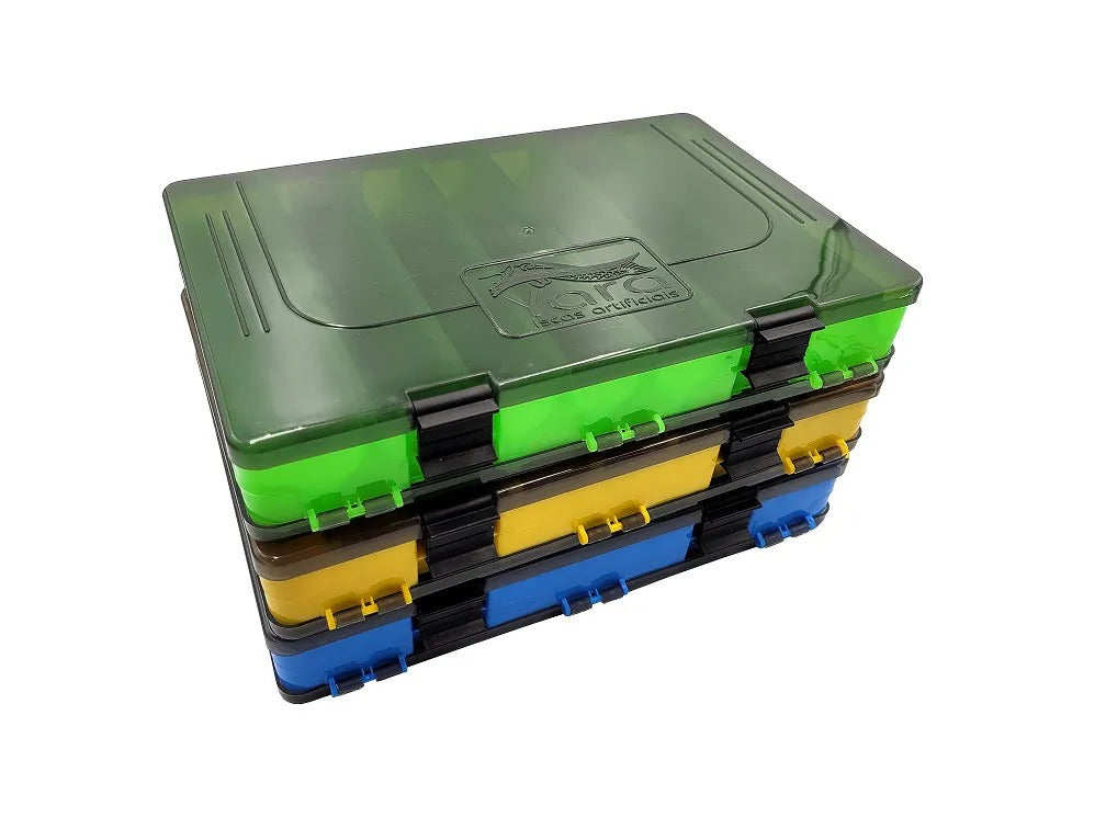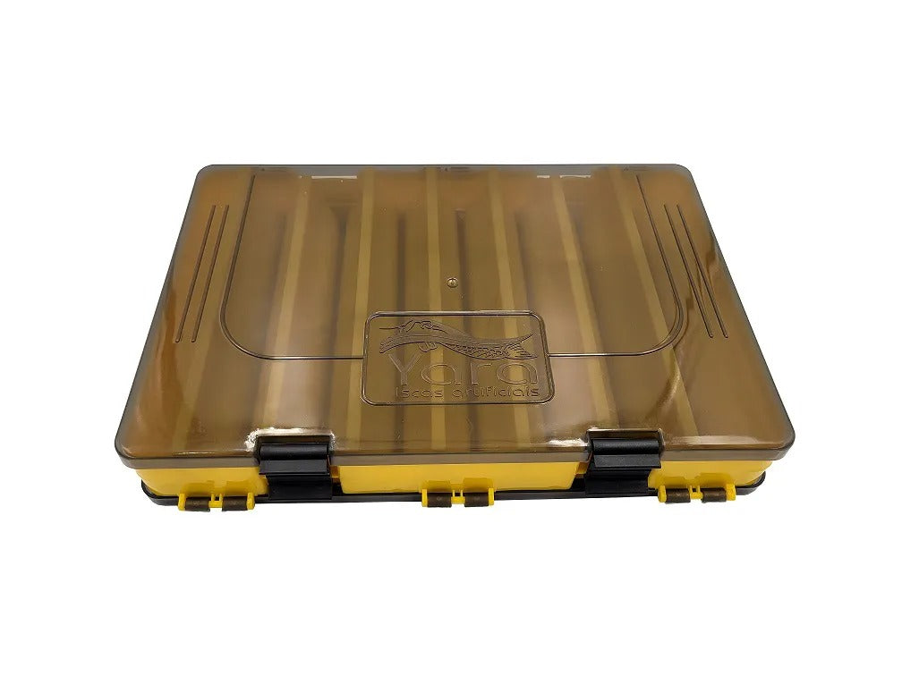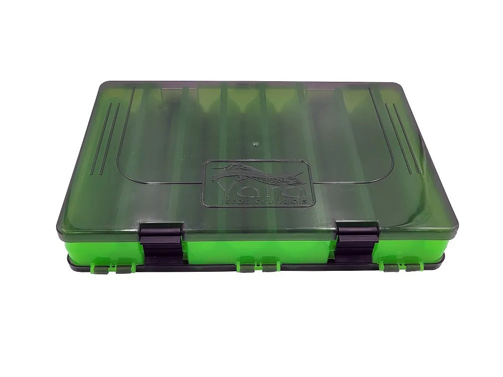 O Estojo Yara Duplo é um acessório para organização de iscas artificiais, jigs e jumping jigs. Tem como diferencial ser dupla face e possuir uma canaleta para encaixe das garatéias e facilitar a acomodação das iscas.